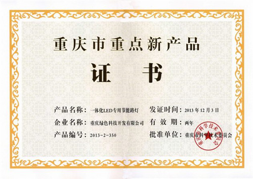 In December 3, 2013, our R & D and manufacturing "ten Hui card" Beijiexiaoxiang integrated detachable LED special energy-saving lamps, after more than management organization to declare and the city of Chongqing Municipal Science and Technology Commission, lighting experts more experts, municipal science and technology department in charge of the review, the product won the Chongqing City in 2013 second batch of key new product identification, and has to be publicized in the Municipal Science and Technology Commission website.