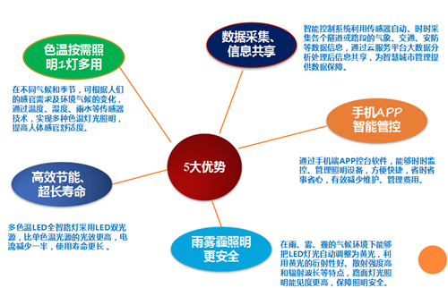 在能源日益短缺,溫室效應(yīng)越來越嚴(yán)重,國家和地方政府大力號召節(jié)能減排、綠色照明的情況下,我司通過自主知識產(chǎn)權(quán)獨立研發(fā)互聯(lián)網(wǎng)+多色溫防霧霾LED全智能路燈系統(tǒng),有效的控制能源消耗,提高路燈壽命,降低維護(hù)和管理成本,具有根據(jù)車流量自動調(diào)節(jié)亮度、遠(yuǎn)程照明控制、故障主動報警、燈具線纜防盜等功能,能夠大幅節(jié)省電力資源,提升公共照明管理水平,節(jié)省維護(hù)成本。