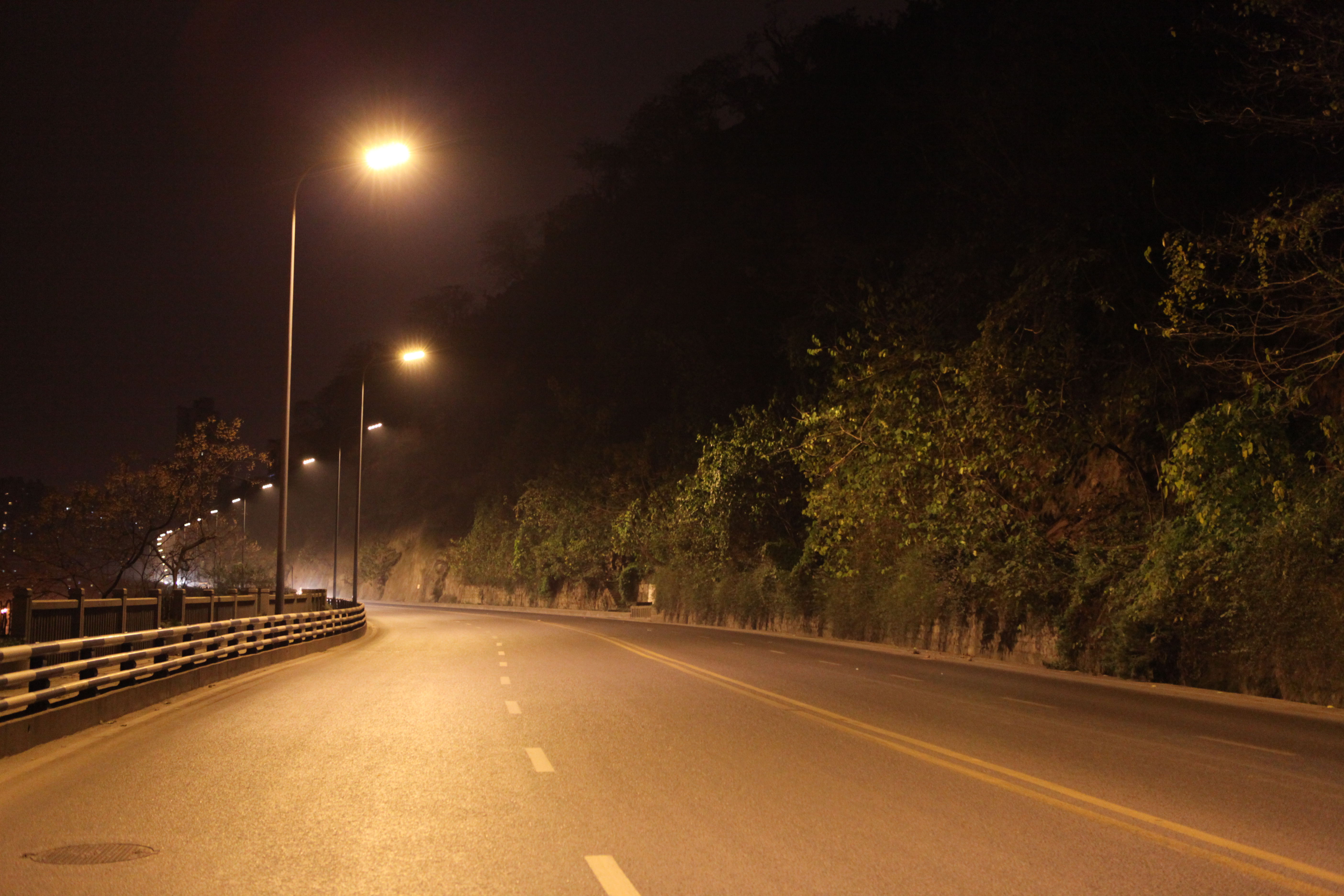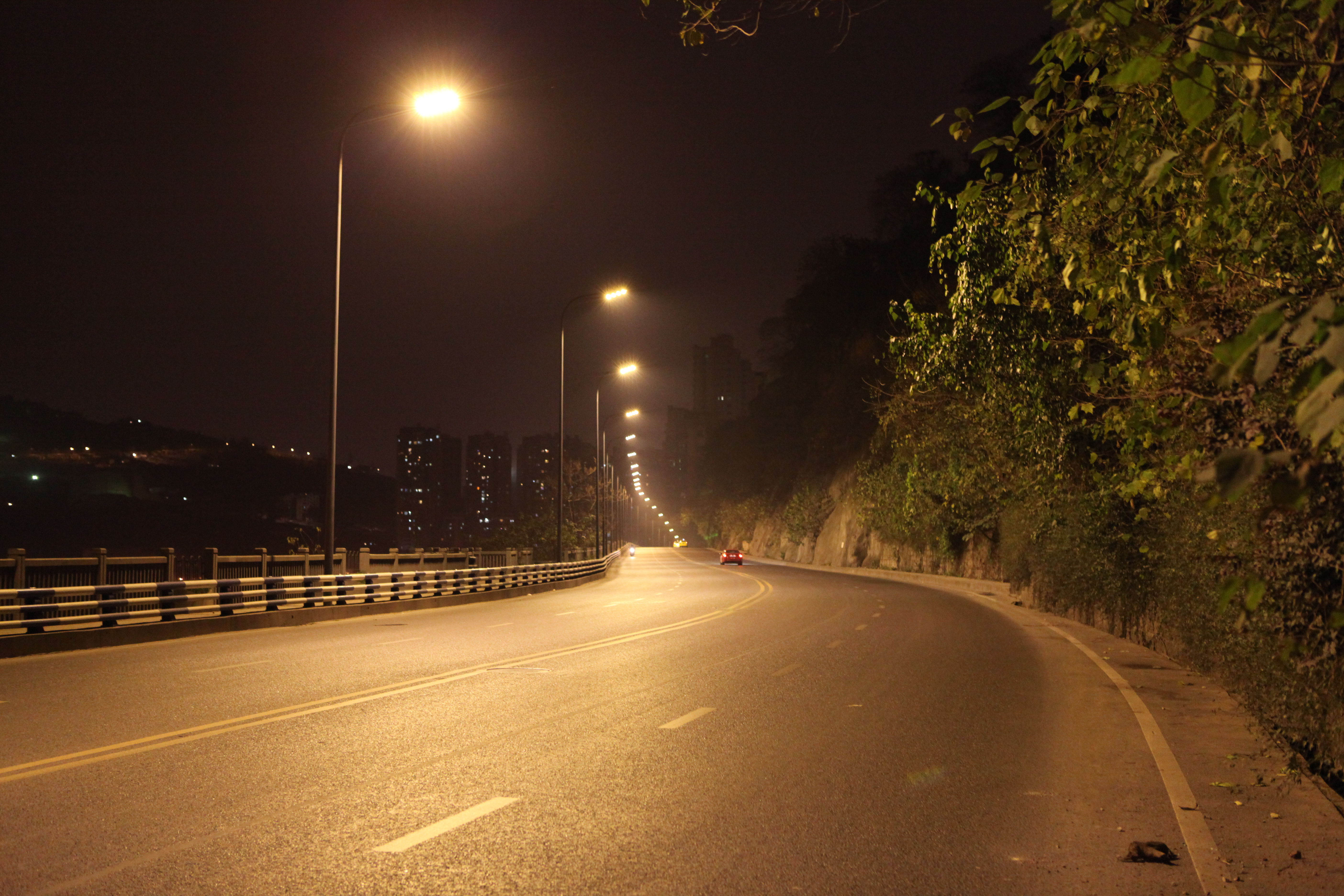 重慶綠色科技開發(集團)有限公司為重慶市城市照明管理局實施的“重慶市渝中區紅巖村滴水巖LED智能路燈綠色照明工程”(單側布燈),主要具有路面燈光清晰度高(顯指70)、均勻度好、光效高等特點,該燈具性能指標均領先全國同類產品,采用我司自主研發的專利技術“互聯網+多色溫LED路燈、隧道燈六遙(多色溫、遙調、遙測、遙控、遙視、遙信)控制系統”(專利號:2015204938054)遙控可實現智能控制。本產品是我司利用多項自主專利技術(專利號:201320842388、201320028126、2015204938054)研發、制造的LED智能路燈產品,并已獲得“重慶市高新技術產品”、“重慶市市政行業新技術認證”。實景照片展示如下(