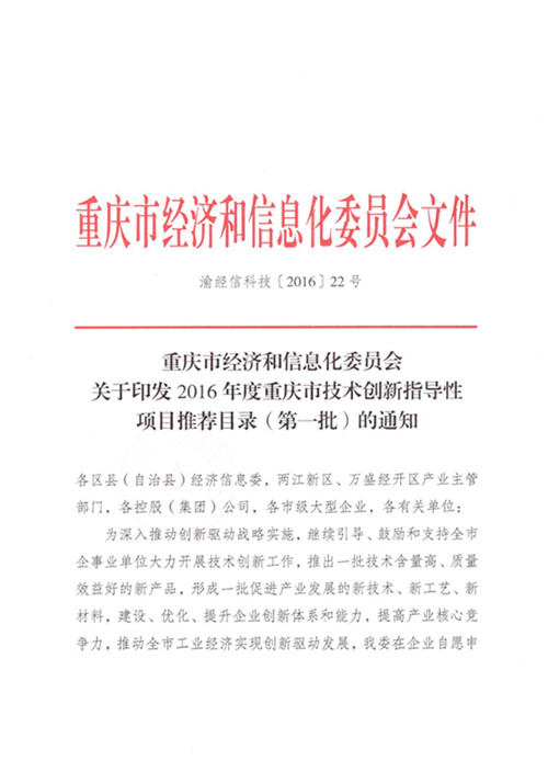 熱烈祝賀重慶綠色科技開發有限公司申報的“互聯網+”多色溫防霧霾、亮度遙調新一代LED路燈及遠程智能控制系統成功列入《2016年度重慶市技術創新指導性項目》